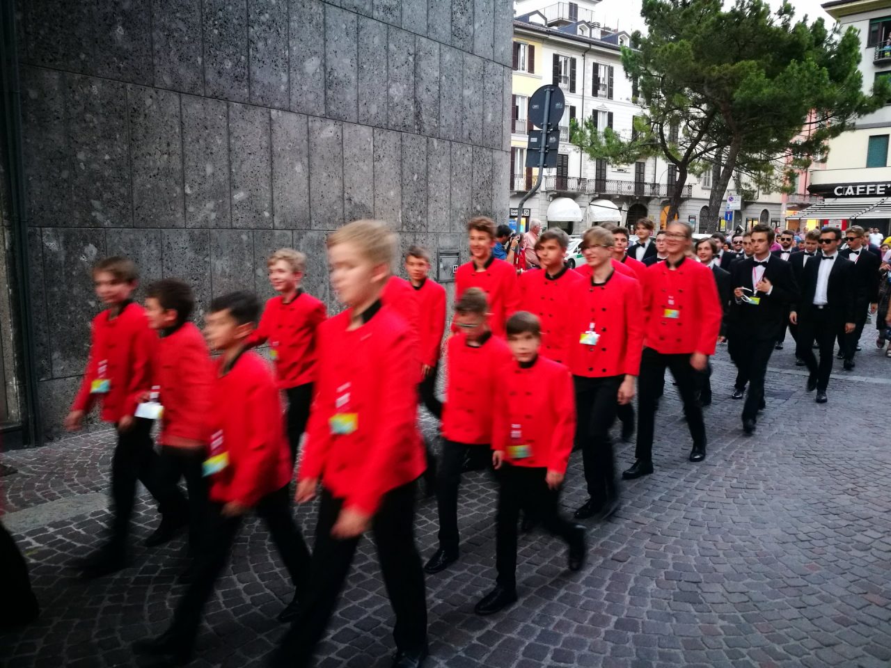 Il corteo è partito da piazza Garibaldi diretto a piazza Cermenati. Qui hanno ricevuto l’omaggio delle gondole lariane, giunte via lago con le bandiere dei paesi di provenienza: Canada, Germania, Polonia, Italia, Russia, Ucraina, repubblica ceca. La manifestazione è stata organizzata in collaborazione con “Gruppo Manzoniano Lucie”. Sempre in piazza Ccermenati si è tenuta anche la cerimonia dell’alza bandiera, con l’esecuzione collettiva  dell’ Inno Europeo. Approdo finale la Basilica di San. Nicolò, dove ai saluti introduttivi,  ha fatto seguito  il concerto del coro ospite d’onore – National Boys Choir of Canada.