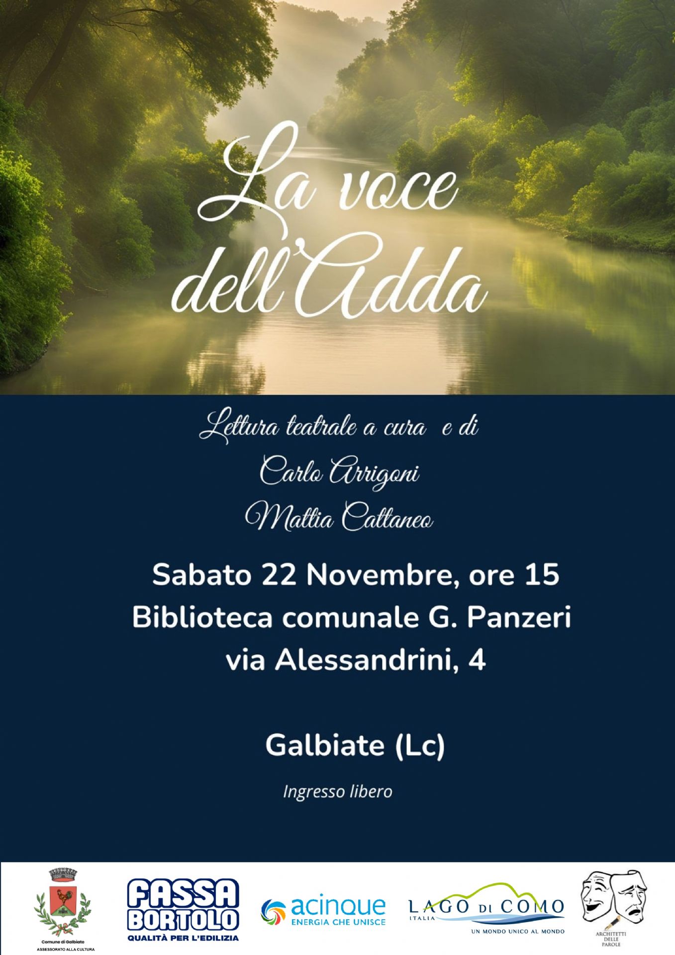 Si parte sabato 22 novembre con “La voce dell’Adda”, lettura teatrale a cura di Carlo Arrigoni e Mattia Cattaneo. Appuntamento alle 15 nella Biblioteca civica “Giuseppe Panzeri”. Ingresso libero.