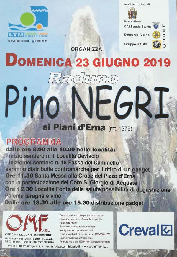 E’ in programma l’annuale raduno ai Piani d’Erna, in ricordo dell’alpinista e cittadino benemerito della Città di Lecco, Pino Negri