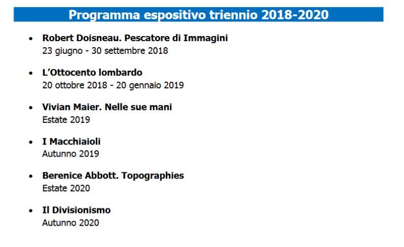 “Oggi abbiamo presentato pubblicamente la nuova gestione e l’intera programmazione espositiva del Comune di Lecco presso lo spazio mostre temporanee di Palazzo Paure per la triennalità 2018-2020 – sottolinea l’assessore alla cultura del Comune di Lecco Simona Piazza – Una programmazione articolata e ambiziosa che si concretizza dopo un lungo lavoro che ha visto la predisposizione di un servizio di gestione esternalizzato a rischio di impresa e dunque senza costi per l’amministrazione comunale.Un’occasione importante e unica per l’intero territorio provinciale che dimostra che l’attività espositiva di Lecco è, e vuole essere sempre più, un capitolo fondamentale della nostra programmazione e dei nostri obiettivi in campo culturale. Le mostre infatti contribuiscono alla crescita della nostra comunità favorendone lo sviluppo sociale e diffondendo conoscenza.Non dimentichiamo infine che offrono un’occasione di crescita qualitativa dell’offerta culturale e la possibilità di coinvolgere un pubblico nuovo e variegato composto non solo dai nostri cittadini ma anche da turisti che sempre più scelgono la nostra città come meta di viaggio”.