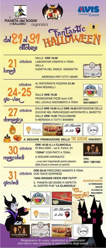Una festa sempre più di moda, apprezzata dai piccoli golosi e anche dai “grandicelli” che cercano in questa serata un po’ di evasione. Nel Lecchese saranno tutti accontentati. Ecco quindi una carrellata di eventi. Invitiamo i promotori di altre iniziative a segnalarcele commentando sotto questo articolo.