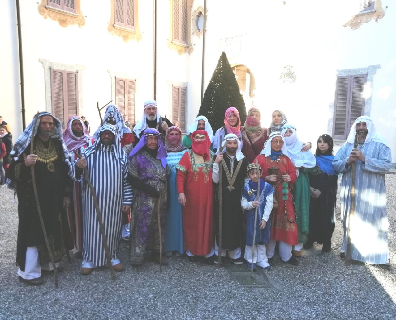 A partire dalle 15, nonostante il freddo e il vento sferzante, il corteo guidato dalla Sacra Famiglia, sotto la grande stella cometa, è partito da Villa Bertarelli per attraversare le vie centrali del paese, raccogliendo man mano diversi personaggi dislocati lungo il percorso. Tra pastori, greggi, angeli, locandieri, abitanti delle oasi, soldati romani a cavallo, sacerdoti del tempio e la regina di Saba alla sfilata hanno partecipato davvero tanti figuranti tra cui spiccavano i profeti e ovviamente i tre Magi protagonisti: Gaspare, Melchiorre e Baldassarre, interpretato da Fabrizio Dipovele, Massimo Tagliabue e Giovanni Montanelli. Bellissimi i costumi, curati nei particolari. Dal terrazzo del consorzio parco del Monte Barro si è affacciato anche re Erode che ha intimato ai magi di fornirgli informazioni su Gesù.