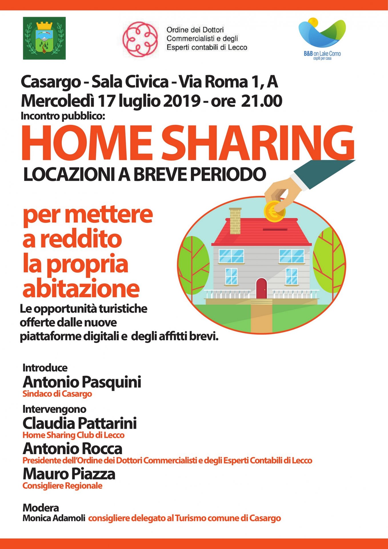 “Interverranno Claudia Pattarini, vice presidente dell’Associazione “Ospiti per Casa”, il Dott. Antonio Rocca, presidente dell’Ordine dei Dottori Commercialisti e degli Esperti Contabili della provincia di Lecco e il consigliere regionale Mauro Piazza, per illustrarci le opportunità, gli aspetti fiscali e normativi riguardanti la gestione degli affitti brevi e degli alloggi per case vacanza” spiega il sindaco Antonio Pasquini.