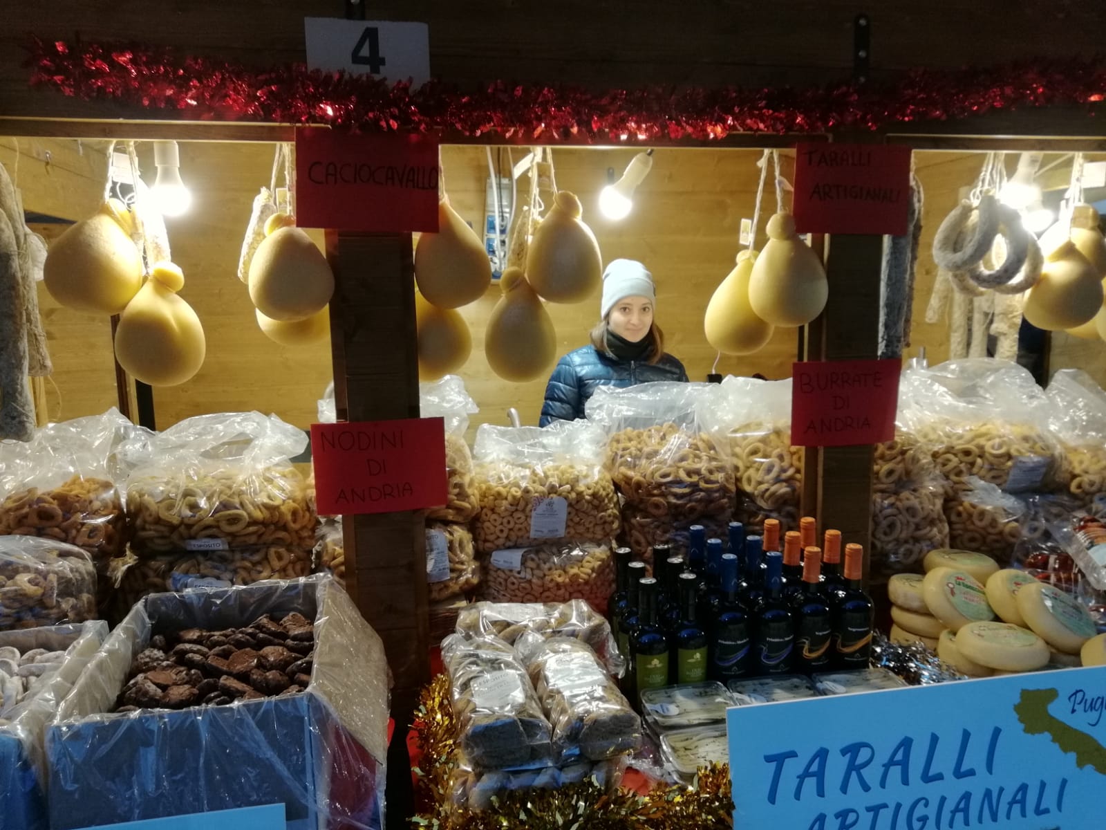 Le tradizionali casette in legno con prodotti dell’artigianato ed enogastronomici sono allestite in piazza Cermenati.