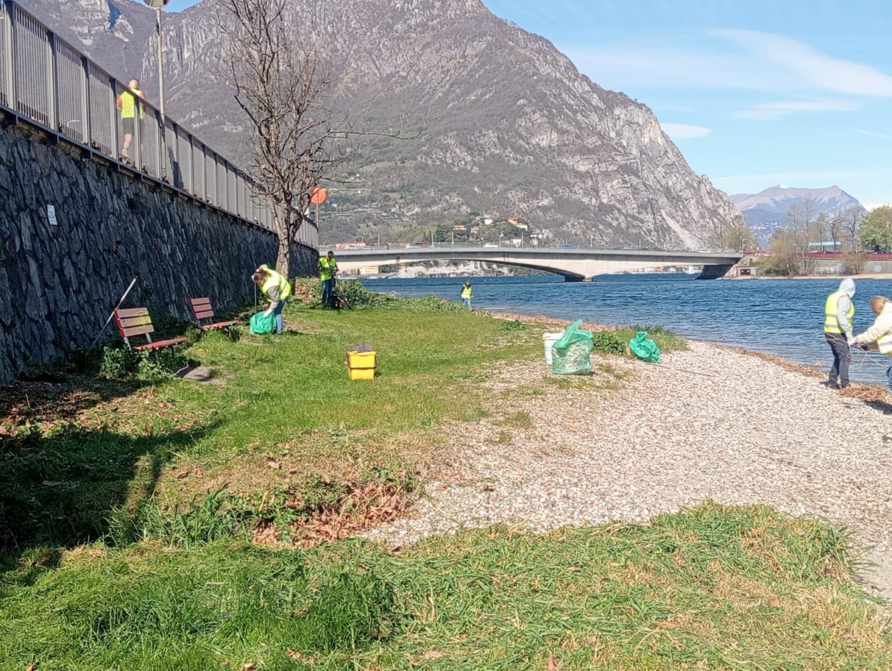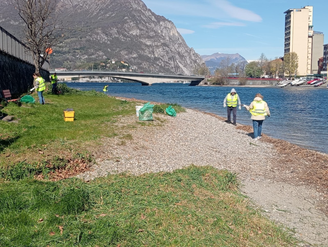 Alcune foto dei volontari all’opera e del lungolago ripulito: