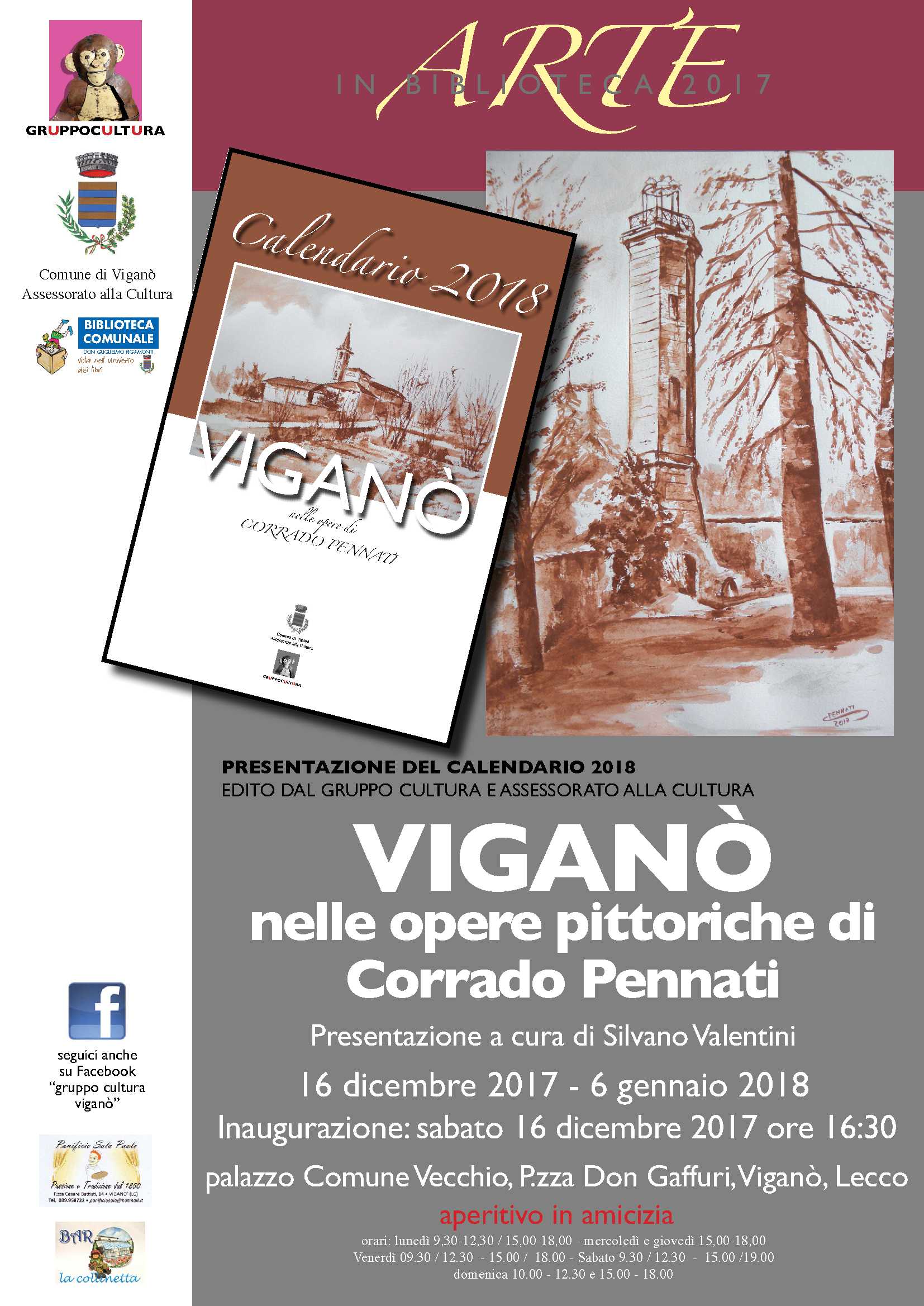 A Viganò arrivano le pitture di Corrado Pennati. La mostra avrà luogo dal 16 dicembre al 6 gennaio è a cura di Silvano Valentini. Le opere pittoriche saranno duqnue accessibili al pubblico da sabato quando, dalle ore 16.30, verrà innaugurata l’esposizione artistica. A seguire ci sarà l’aperitivo. In piazza Don Gaffuri, nel Comune Vecchio, saranno molte le occasioni per godere della mostra.
