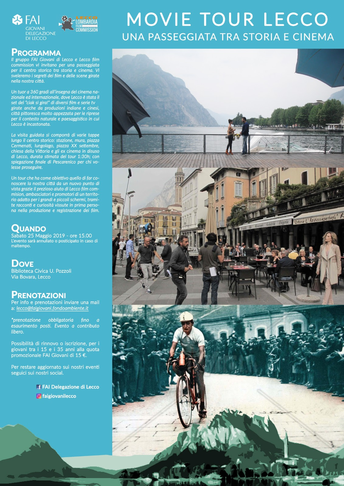 Il Gruppo FAI Giovani di Lecco e Lecco Film Commission invitano ad una passeggiata per il centro storico di Lecco tra storia e cinema, dove verranno svelati i segreti dei film e delle scene girate in città in diversi film.