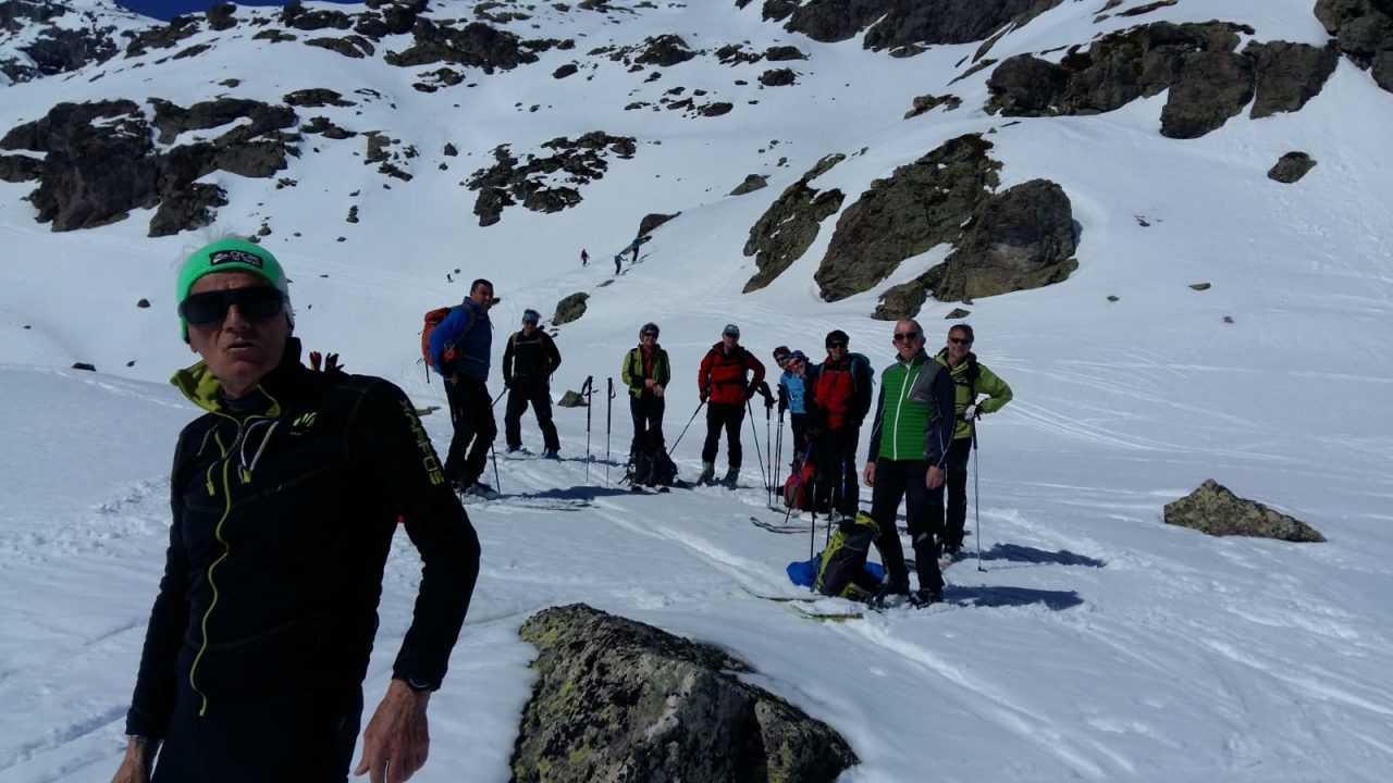 Lasciata alle spalle una stagione invernale caratterizzata da forte vento e scarse precipitazioni nevose, gli scialpinisti del Cai Strada Storta  hanno affrontato le elevate temperature del Piz Grevasalvas (Engadina – Plaun da Lej – Svizzera), a circa 3000 mt.