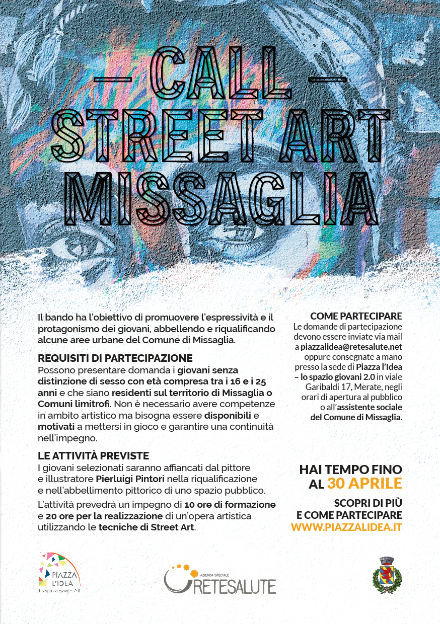 Fino al 30 aprile è possibile partecipare al bando Street Art Missaglia indetto dal Comune per la ricerca di giovani artisti che grazie alla loro espressività potranno riqualificare alcune aree urbane del paese.