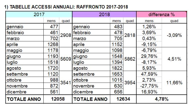 Dal 2014 a oggi il numero di accessi all’Infopoint è aumentato di anno in anno, con la sola eccezione del 2016, che ha fatto segnare un leggero calo, fisiologico rispetto al 2015, anno di Expo. Già nel 2017 gli utenti hanno superato le 12.000 unità, raggiungendo nel 2018 il record annuale di 12.634 visitatori, pari al +4,8% rispetto al precedente anno. Ancora più netta la crescita registrata nel 2018 rispetto al 2014, pari al +51,36%.