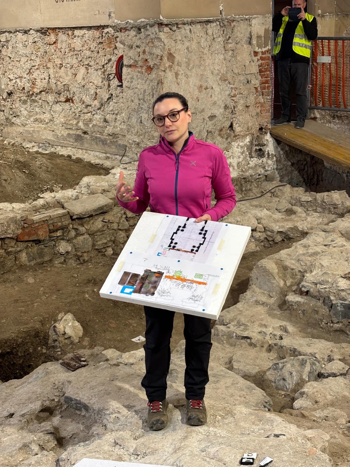 Oltre a questi dettagli che non hanno sorpreso gli addetti ai lavori, sono emersi reperti del tutto inaspettati, tra i quali un tratto di muro che riporta un affresco datato intorno al 1400. “Con ogni probabilità – spiega la direttrice degli scavi – si tratta della chiesa ancora precedente a quella di metà ‘500, che non era nota dalle fonti. Oltre alle mura, abbiamo trovato anche la pavimentazione e numerosi altri frammenti di affresco (una decina di casse in tutto)”.