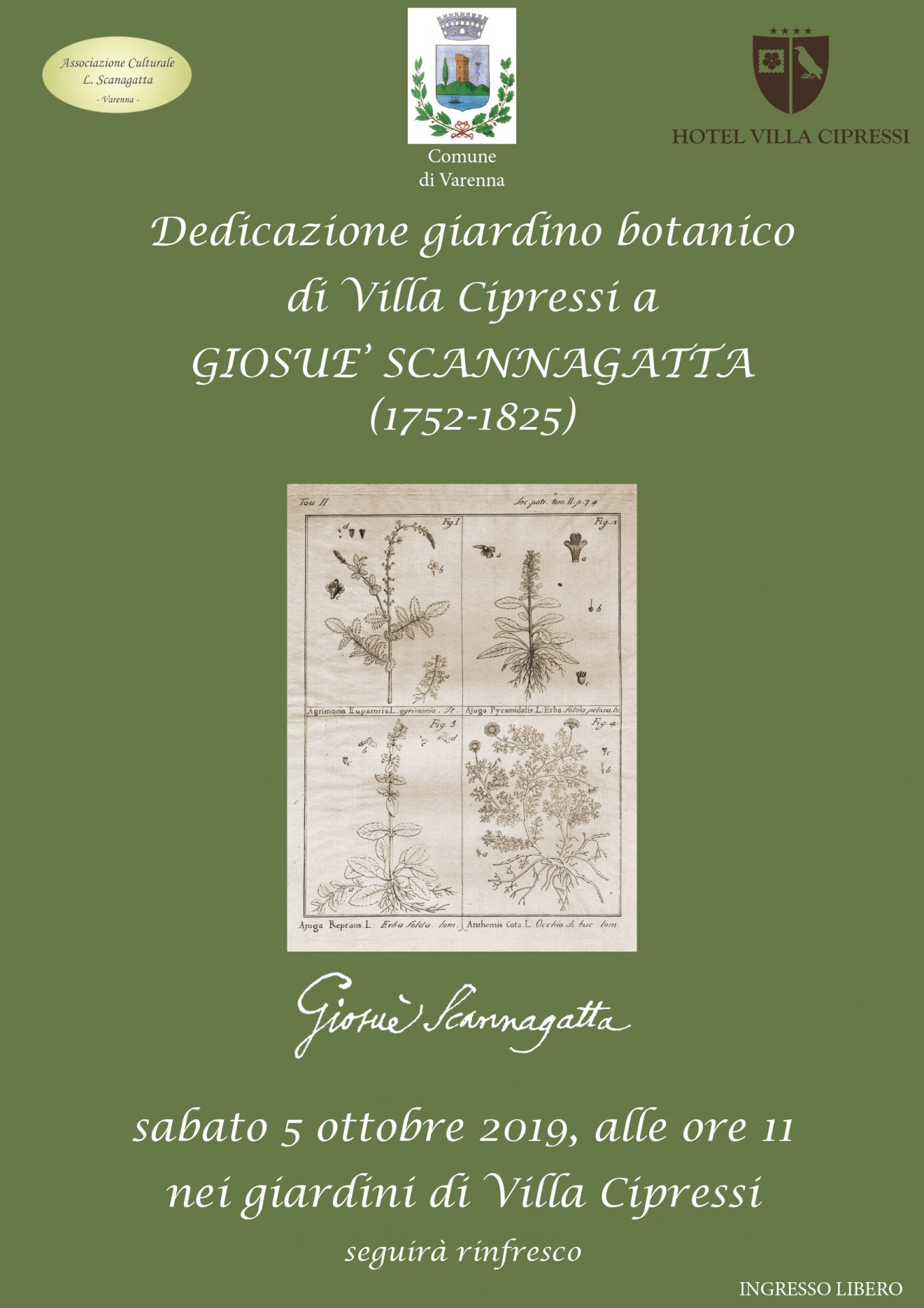 In prossimità della darsena di Villa Cipressi a Varenna, avrà avrà luogo, sabato 5 ottobre alle 11, una breve cerimonia pubblica di dedicazione del giardino al botanico a Giosuè Scannagatta, nativo del paese.