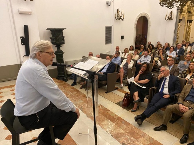 A introdurre la lezione critica su Canova sono state Anna Ranzi, conservatore del Museo di Villa Monastero, e Alessandra Hofmann, presidente della Provincia di Lecco, che hanno ringraziato lo studioso per aver accolto l’invito e anche per la sua “continua e instancabile ricerca del bello”. Una ricerca raccontata anche nel suo ultimo libro: “Scoperte e rivelazioni. Caccia al tesoro dell’arte”, così come in “Canova e la bella amata” (entrambi editi da La Nave di Teseo) nel quale ripercorre l’incredibile scoperta fatta nel 2017, quando, durante la visita in una villa immersa nella campagna cremonese, ha scoperto un’autentica scultura di Canova, “il busto di una donna con i capelli raccolti in un nastro, firmato sul retro” risalente al 1811, e che verrà appunto chiamata “La bella amata”.