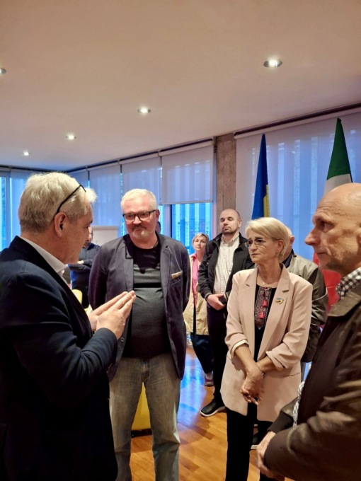 Durante la seconda giornata della visita, la delegazione ha avuto l’occasione di conoscere alcune eccellenze imprenditoriali del territorio, tra cui Edilsider di Calolziocorte, azienda associata a Confapi Lecco Sondrio. Ad accoglierli, il titolare Carlo Spada, insieme a Valeria Dalmonte, Direttore Operativo, e a Guglielmo Spada, responsabile del reparto Ricerca & Sviluppo. Dopo una presentazione della storia e dell’attività dell’azienda — che da oltre 60 anni realizza prefabbricati per il mercato internazionale, impiegando più di 250 dipendenti — gli imprenditori ucraini hanno potuto visitare i reparti produttivi, toccando con mano le tecnologie e le competenze del sito lecchese.