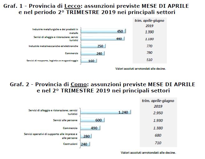 Nel 2° trimestre 2019 le imprese delle provincie di Como e Lecco prevedono di effettuare complessivamente 18.780 assunzioni: a cercare nuovo personale sarà il 24,1% delle aziende comasche con almeno un dipendente e il 22,2% di quelle lecchesi.