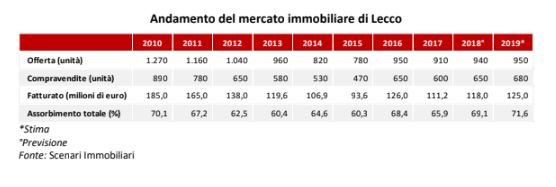 Considerati i buoni risultati del 2018, le previsioni per il 2019 rimangono positive, anche se il mercato immobiliare della città di Lecco continuerà con tutta probabilità a rimanere un mercato marginale all’interno del panorama lombardo.