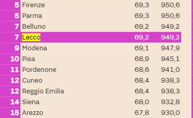 Lecco, a livello italiano è infatti settima per tasso do occupazione