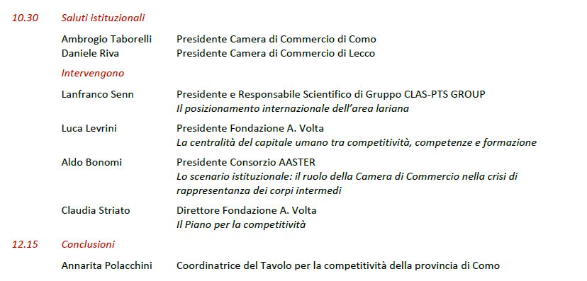 Il piano di competitività dell’area Lariana