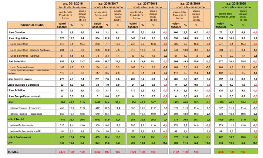 Scuole superiori lecchesi: ecco cosa hanno scelto ragazzi e famiglie I DATI ISTITUTO PER ISTITUTO