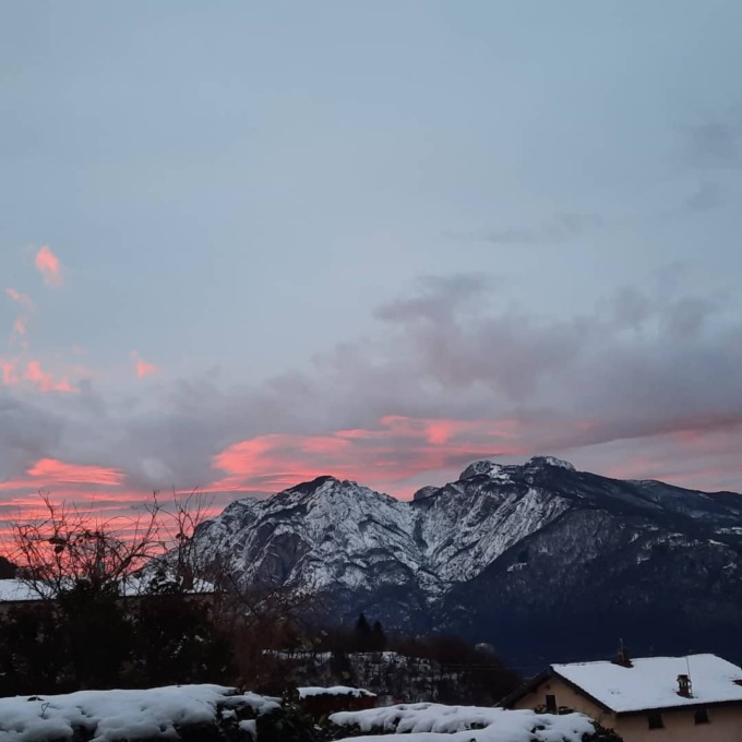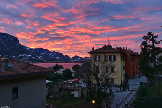 Dopo la nevicata del giorno dell’Immacolata ancora  una volta lo spettacolo è arrivato dal cielo. Un cielo che, nella primissima mattinata di oggi, ha regalato un’alba infuocata sul Lecchese.