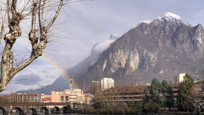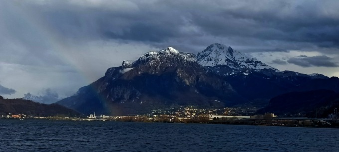 Uno spettacolo magnifico quello regalato dal meteo questa mattina, mercoledì 6 marzo 2024: arcobaleno e neve sui monti e Lecco diventa una cartolina.