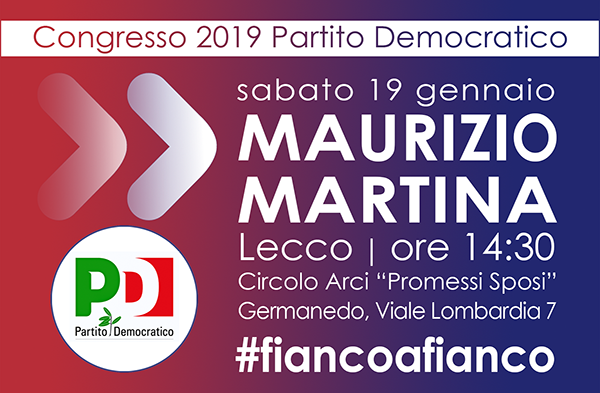 Si parte domani, sabato 19 gennaio, alle ore 14.30, presso il Circolo Arci “Promessi Sposi” di Lecco, in Viale Lombardia 7- “Maurizio Martina sarà con noi per presentarci di persona il suo programma” sottolinea l’onorevole dem lecchese Gian Mario Fragomeli. “Lunedì 11 febbraio, sempre a Lecco, alle ore 20.30, incontreremo invece Graziano Delrio che interverrà in sostegno a Maurizio Martina Segretario PD”