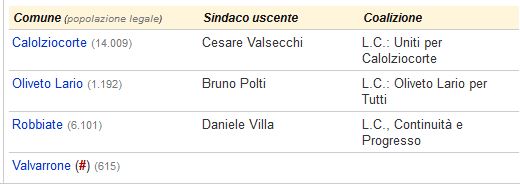 Il principale paese, anzi la principale città al voto nella nostra provincia è Calololziocorte. E qui la campagna elettorale è già ampiamente iniziata… nel segno della polemica. Infatti nel capoluogo della Valle San Martino si sta consumando una vera e propria faida all’interno del Partito Democratico, attualmente in maggioranza. Pare infatti che accanto al sindaco uscente, Cesare Valsecchi in campo possa scendere anche Roberto Monteleone che del Pd è coordinatore cittadino. Sempre nell’area di sinistra candidatura anche di Diego Colosimo di Cambia Calolzio. La Lega, dopo gli anni ruggenti del sindaco Paolo Arrigoni, oggi senatore e Questore del Senato, proverà a riconquistare la città con Marco Ghezzi.
