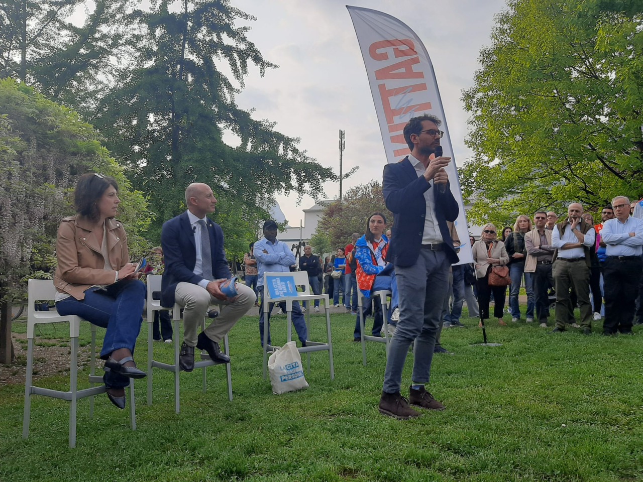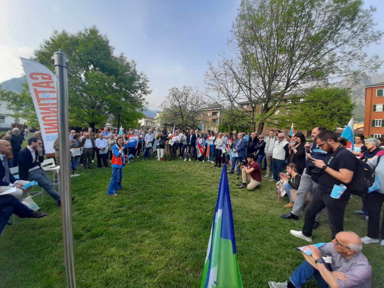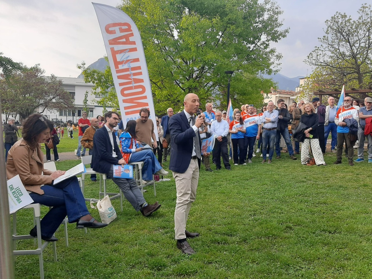 Ha scelto il parco di Belledo (rione di Lecco), il sindaco uscente Mauro Gattinoni, per presentare il suo programma elettorale, ieri venerdì 17 aprile 2026, circondato dai suoi fedelissimi molti con addosso la maglia (e accompagnati dalla bandiera) di Fattore Lecco.