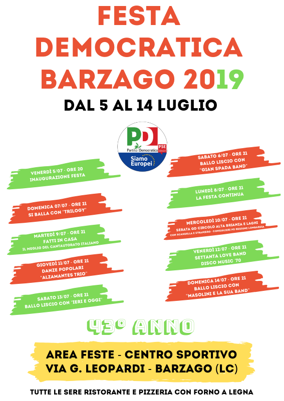 A parlarne saranno i consiglieri regionali Raffaele Straniero e Jacopo Scandella. L’appuntamento è alle 21 al centro sportivo. La serata è inserita all’interno del ricco programma della Festa Democratica di Barzaco che è iniziata il 5 luglio e proseguirà sino al 14.