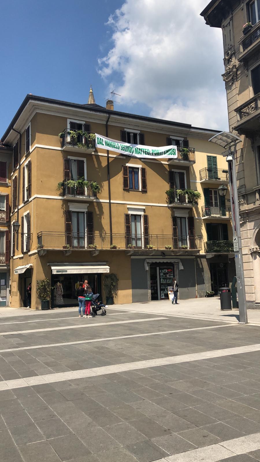 Infuria a Lecco la polemica intorno allo striscione “Dal vangelo secondo Matteo: porti chiusi”. Il mega slogan è stato è stato affisso nella serata di ieri, mercoledì 22 maggio 2019, all’esterno di uno stabile di Piazza XX Settembre, nel salotto buono della città. L’autrice è Lucia Cagliani, storica sostenitrice del Carroccio che ha voluto pubblicamente esprimere  il proprio sostegno al Ministro dell’Interno Matteo Salvini e in particolare alla sua politica migratoria.