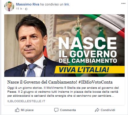 Dal governo del cambiamento al cambiamento del governo” e quello dell’ex sottosegretario regionale Daniele Nava: “In 28 pagine di curriculum leggo : “ Devoto di padre Pio”… e allora abbiamo finalmente l’uomo della Provvidenza…Robe da matti.”