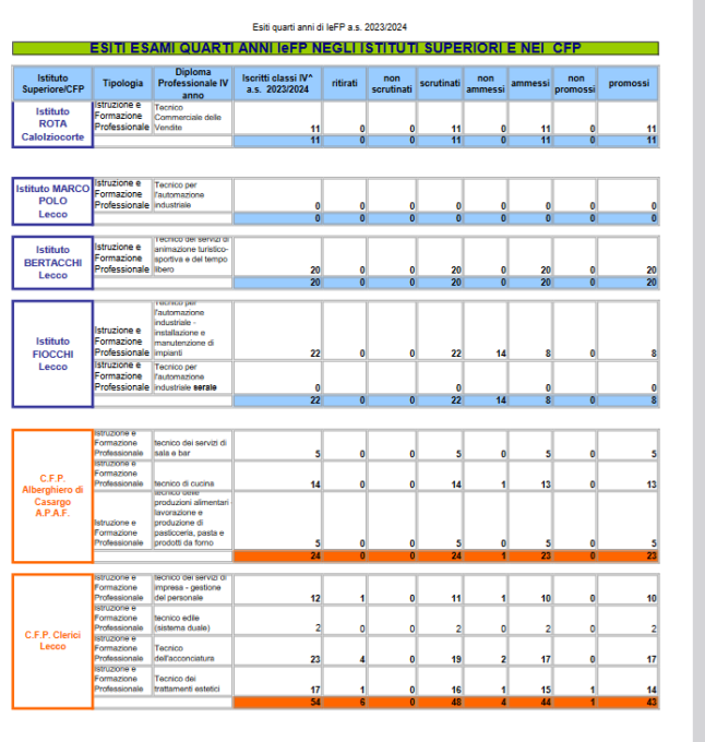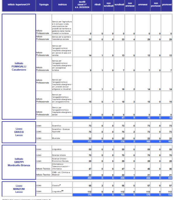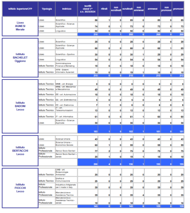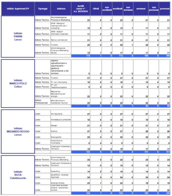 La Provincia di Lecco ha concluso il monitoraggio dei dati relativi agli esiti degli esami di maturità e di qualifica dell’anno scolastico e formativo 2023/2024, che si sono svolti negli istituti superiori e nei centri di formazione professionale del territorio provinciale.