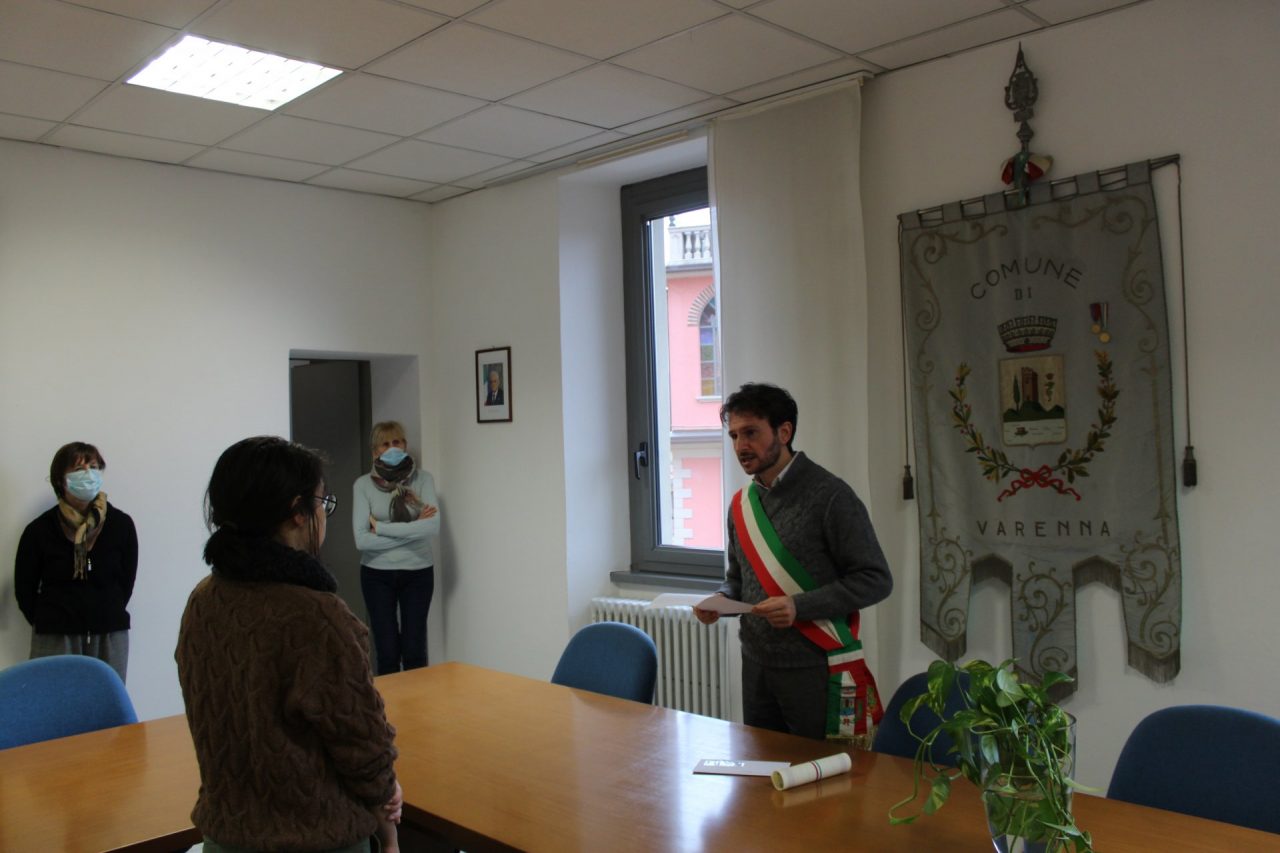 “Non abbiamo però voluto esimerci dal gesto “in presenza” – ha detto il sindaco Mauro Manzoni rivolgendosi a Martina – per consegnarti personalmente questo riconoscimento che, oltre al suo valore economico, vuole esprimere, a nome di tutta la comunità di Varenna, le nostre congratulazioni per l’eccellente risultato da te conseguito. Oltre che tua soddisfazione personale, la meta raggiunta avrà reso orgogliosi i tuoi familiari e le persone che ti sono care”.
