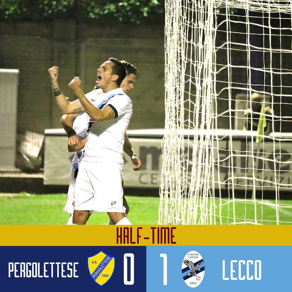 Clamorosa traversa della Pergolettese: Canessa si butta sul pallone di testa e trova in pieno il palo alto della porta. Il Lecco si fa vedere all’ottavo minuto con un tiro da fuori area di Moleri parato dal portiere avversario che al quattordicesimo ferma anche il tentativo di Pedrocchi.