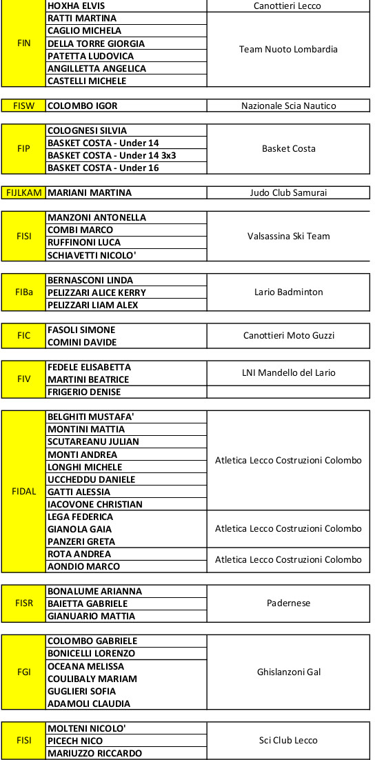 Coni Point Lecco, tutti i premiati