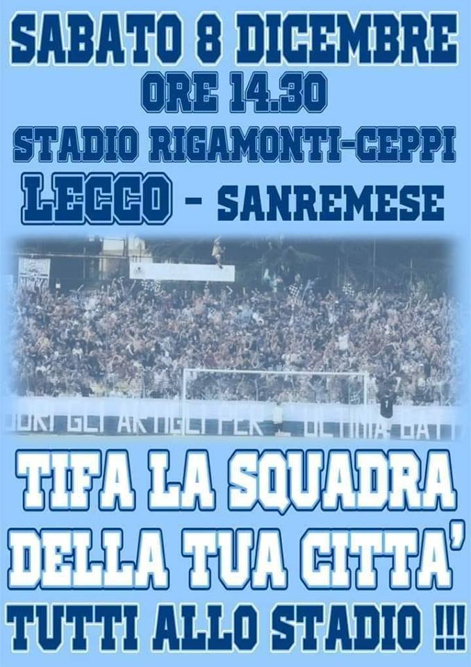 Domani, sabato 8 dicembre 2018, big match al Rigamonti Ceppi: la Calcio Lecco 1912 scenderà in campo in campo per rimanere in testa alla classifica del Girone A della Serie D.