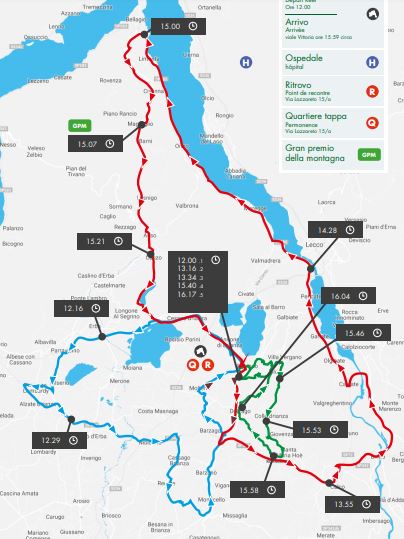 In totale i concorrenti dovranno percorrere 176 km, disegnati tra le province di Lecco, Como, Monza Brianza e Bergamo e l’arrivo è previsto intorno alle ore 16,15 ad Oggiono.
