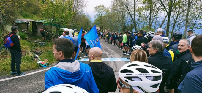 Tantissimi gli appassionati e i tifosi che nella giornata di oggi, domenica 21 maggio 2023, si sono radunati – chi a piedi e chi in bicicletta – lungo la salita di Valcava, frazione di Torre De Busi, dove la strada è chiusa al traffico ad eccezione dei mezzi di squadra e di organizzazione.