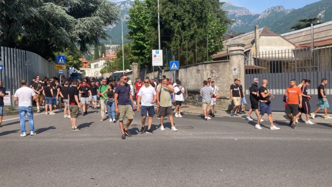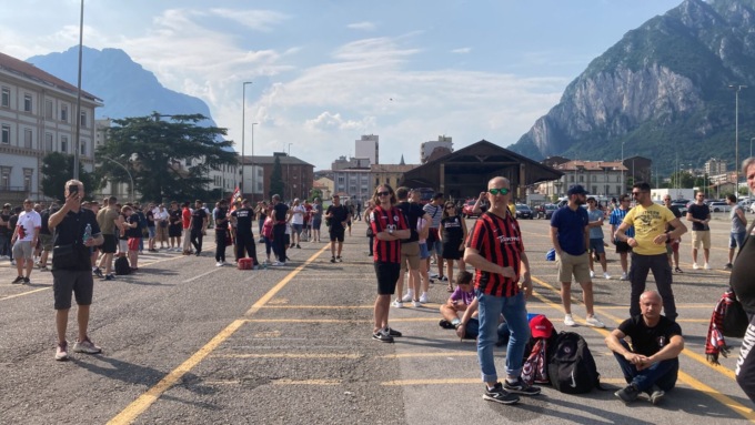 I tifosi rossoneri Sprovvisti di biglietto sono stati accompagnati alla Piccola dove è stato allestito per loro un maxischermo. Presenti gli agenti della polizia Locale, i Vigili del fuoco e i volontari della protezione civile che hanno distribuito bottigliette d’acqua.