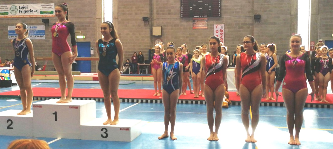 Quatto le esordienti ( bimbe di prima e seconda elementare) in gara per la Polisportiva: Viola, Martina, Nami e Ilaria. Quest’ultima stupisce con un salto al trampolino perfetto che le vale il titolo di campionessa al trampolino. Per tutte queste ginnaste era la prima prova in questa gara. Le Junior A di seconda e terza media si sfidano contro altre 68 atlete della regione. Le atlete olgiatesi sono Emma, Benedetta, Martina, Eleonora, Sara, Emma, Giulia, Silvia. Degno di particolare lode il sesto posto generale di Giulia Trisoglio che vince il titolo di campionessa al trampolino e di vice campionessa sia in trave che in volteggio. Buonissimi piazzamenti anche per Silvia Pirovano quinta sia al trampolino che al volteggio.