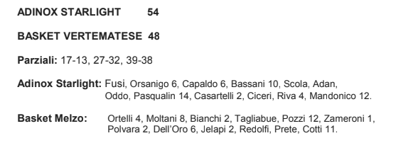 Era fondamentale per la formazione di casa vincere questa sfida, per consolidare il primato, ma soprattutto tenere a debita distanze le più immediate avversarie ma anche dare una risposta ben chiara a tutti, che l’Adinox di quest’anno, fa sul serio e punta in alto. Tutti obbietti conquistati dalla compagine valmadrerese, che vince il match 54-48 in una serata decisamente sofferta.