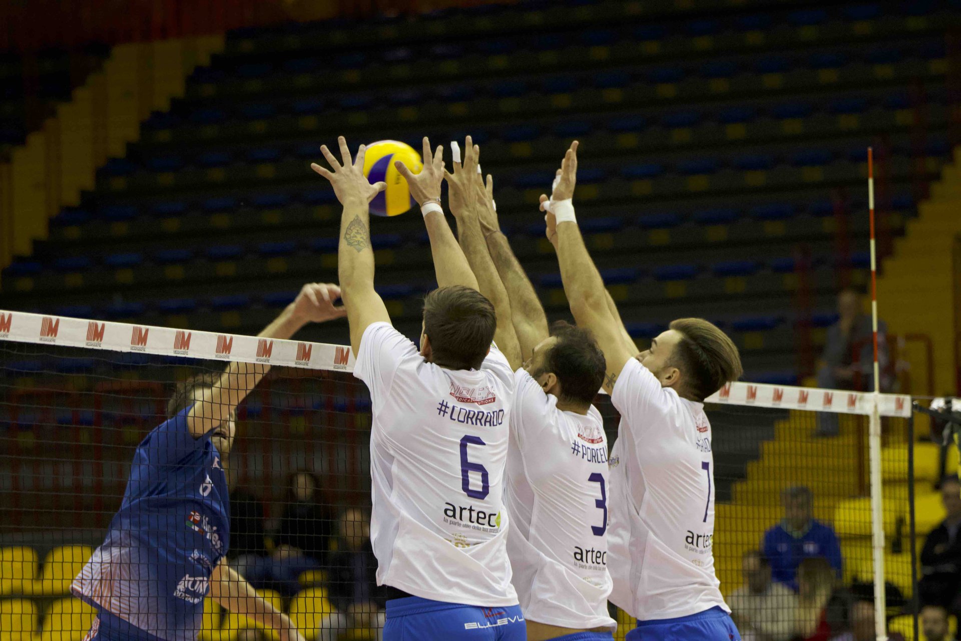 Elios Messaggerie Catania: Finoli 4, Bonacic 16, Porcello 7, Gradi 7, Corrado 14, Mazza 7; Pricoco (L1). De Costa (L2). N.e. Reina, Petrone, Nicosia, Chillemi. All.: Puleo, Giuffrida