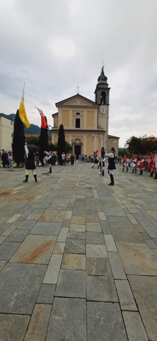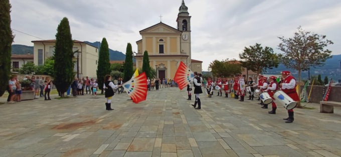 Ad aprire la manifestazione, il grande spettacolo del Gruppo Sbandieratori di Primaluna, che si è esibito intorno alle 19 in piazza Antichi Padri.