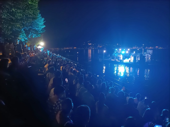 Un concerto ovviamente sold out: 700 gli spettatori sulle gradinate a lago davanti alla piattaforma galleggiante. Altre centinaia quelle che, non essendo riuscite ad accaparrarsi un biglietto, si sono assiepate sul lungolago cittadino chiuso per un tratto per l’occasione.