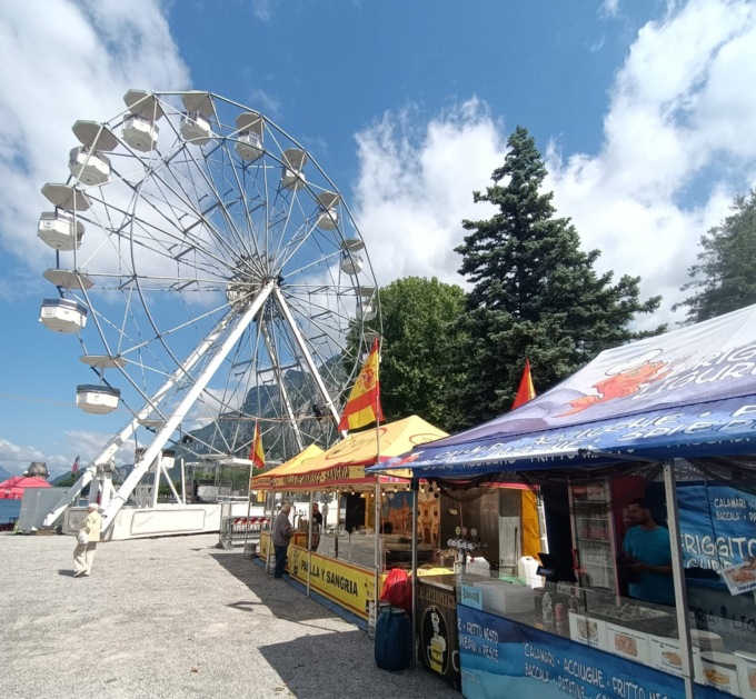 Tutti i banchi di cucina tipica, italiana e internazionale, sono stati collocati in Riva Martiri delle Foibe, accanto alla ruota panoramica già allestita per l’occasione.