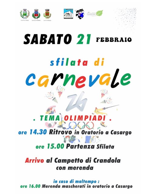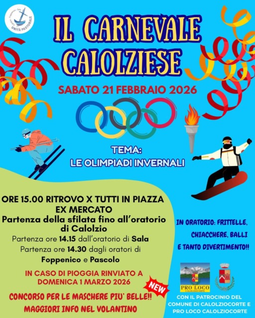 Calolziocorte quest’anno lancia la sfida alle maschere più belle! Sfilata a tema olimpiadi invernali il 21 febbraio 2026.