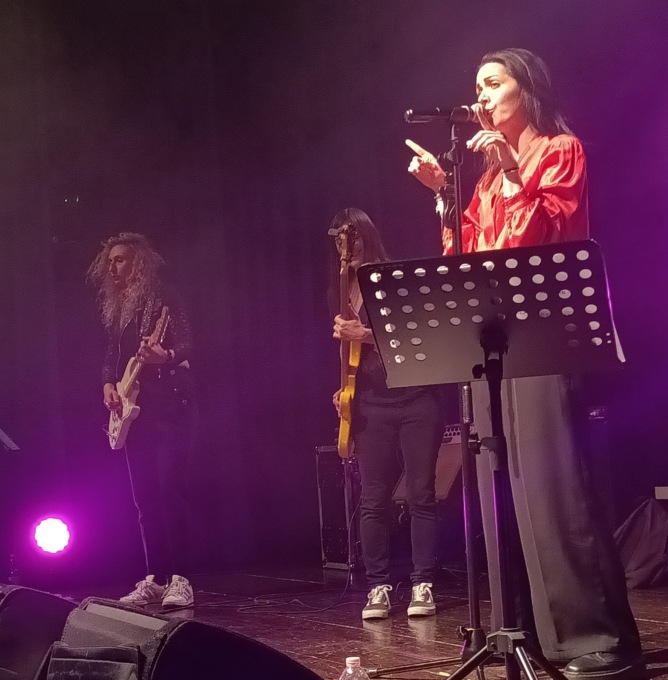 Subito dopo, spazio alla musica con le Giannissime, band composta da Valeria Ravasio (tastiere), Michela Rota (batteria), Sara Bertuletti (basso), Gloria Remonti (chitarra), Emilia Taramelli e Lucy Dasilva (voci). Nel corso della serata, le due cantanti si sono alternate sul palco, regalando al pubblico emozioni e coinvolgimento. In particolare, Lucy Dasilva ha interpretato alcuni grandi successi di Loredana Bertè, come “Non sono una signora” e “Il mare d’inverno”, scendendo dal palco per interagire direttamente con il pubblico, quasi interamente femminile. La serata si è poi conclusa con “Quello che le donne non dicono”, il celebre brano scritto da Enrico Ruggeri e portato al successo da Fiorella Mannoia.