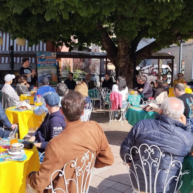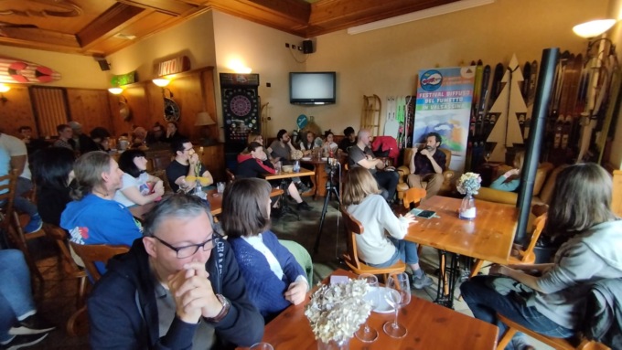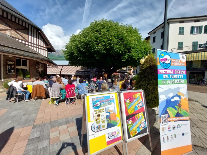 Il meteo ha fatto qualche dispetto al Festival diffuso del fumetto, mentre i momenti di bel tempo hanno decisamente premiato la proposta dell’associazione culturale La Fucina. Tutto esaurito infatti per Teresa Radice e Stefano Turconi, in dialogo con Pelati&Fumetti, e per Claudio e Marco Villa, protagonisti di una colazione allo Chalet di Barzio abilmente ‘arbitrati’ da Davide Barzi, così come il sole ha accompagnato Francesco Castelli ed Emanuele Tenderini e il pomeriggio di giochi in scatola con Lario Ludens nella piazza di Cremeno.