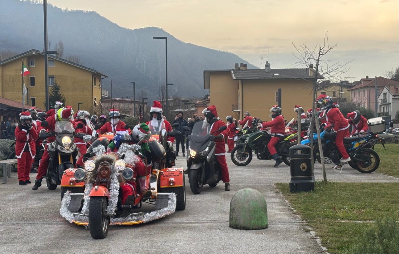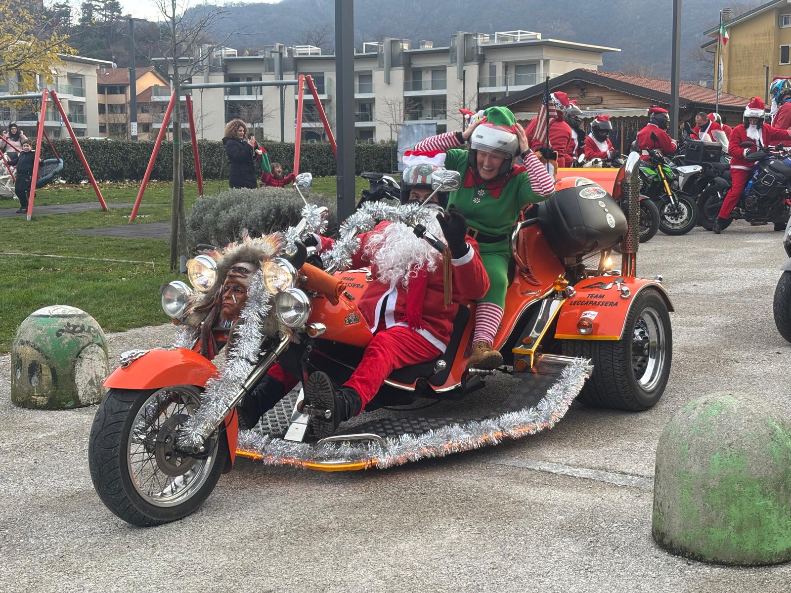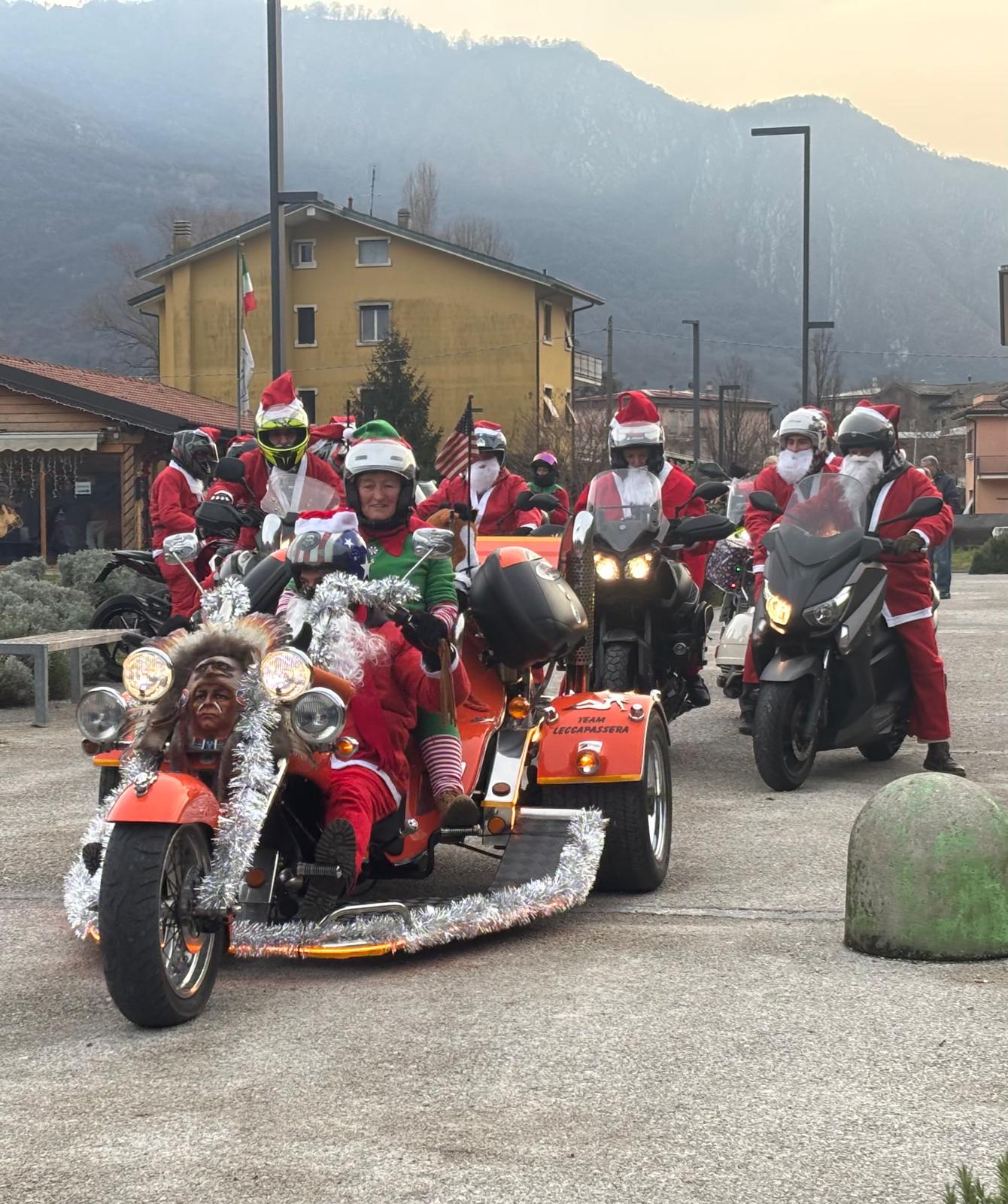 Vestiti da Babbo Natale o da elfi, in sella alle loro moto, c’è chi porta persino un cagnolino – anche questo vestito a tema: nel pomeriggio di ieri, sabato 20 dicembre 2025, i Babbi Svalvolati hanno percorso in sella alle loro motociclette le vie di Valmadrera, tra lo stupore dei presenti, per diffondere con i loro motori un particolare e suggestivo augurio di buone feste.
