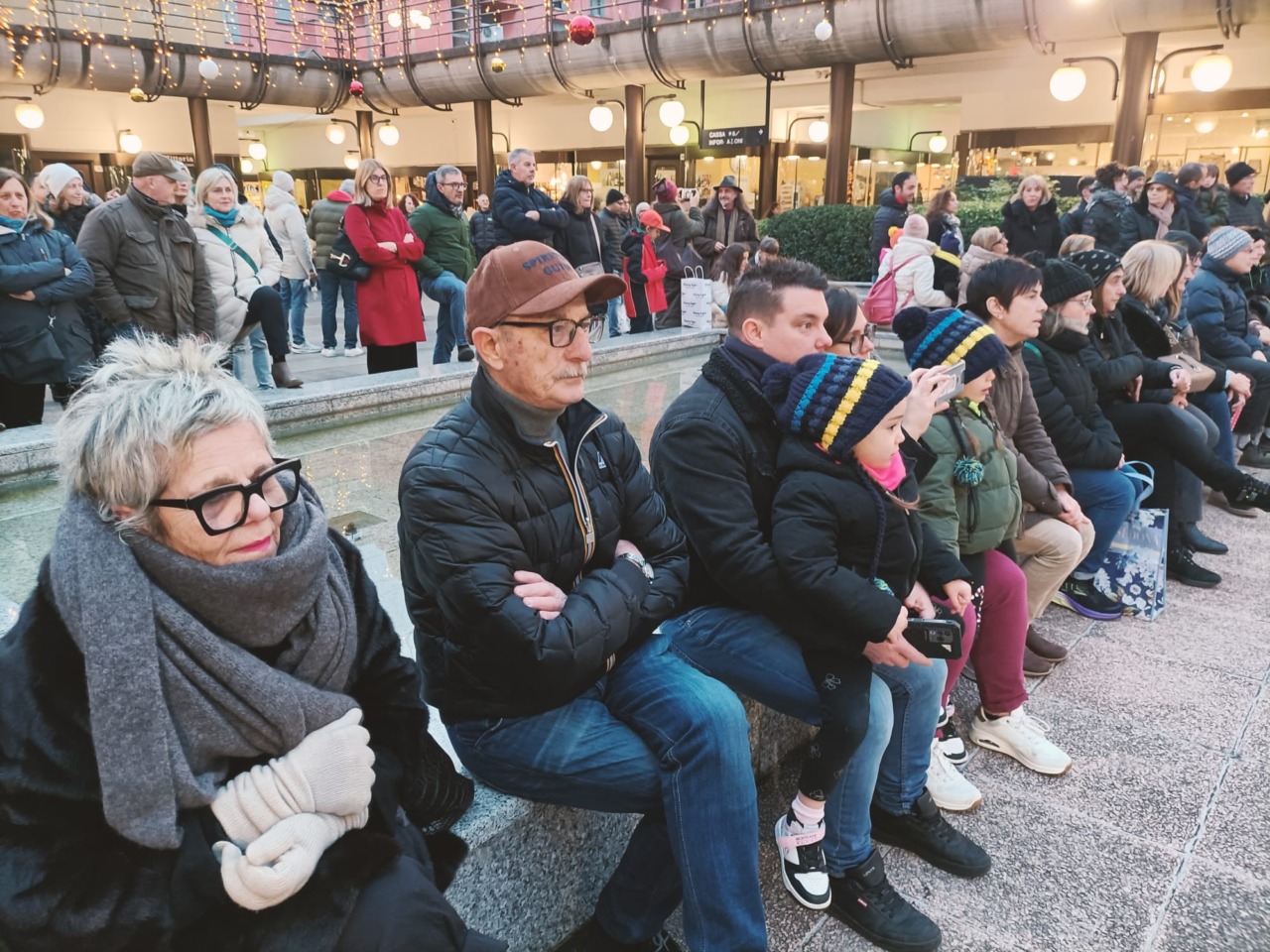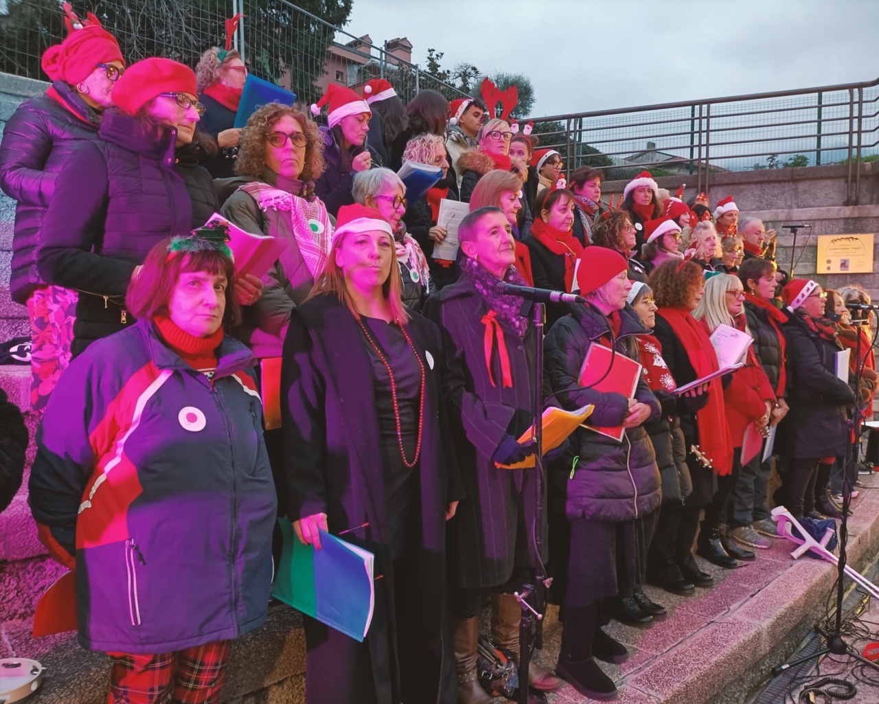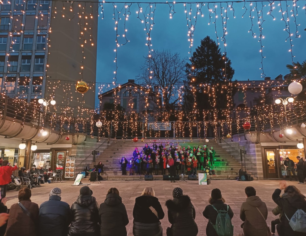 Per il quarto anno consecutivo anche oggi, 21 dicembre 2025, la domenica che precede il Natale, il coro “Creem&Friends” di Lecco, composto da 35 elementi e diretto da Veronica Porracciolo e Diletta Longhi, si è esibito nella piazzetta dell’Isolago, in centro città, per il concerto di Natale patrocinato dall’Amministrazione comunale.